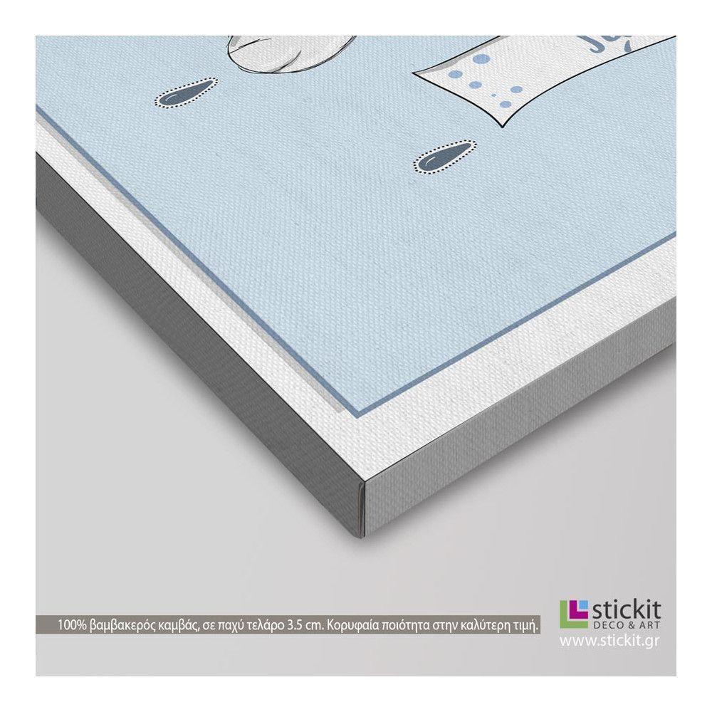 Πίνακας παιδικός σε καμβά It's a boy!!!, αρκουδάκι ή λαγουδάκι, με όνομα