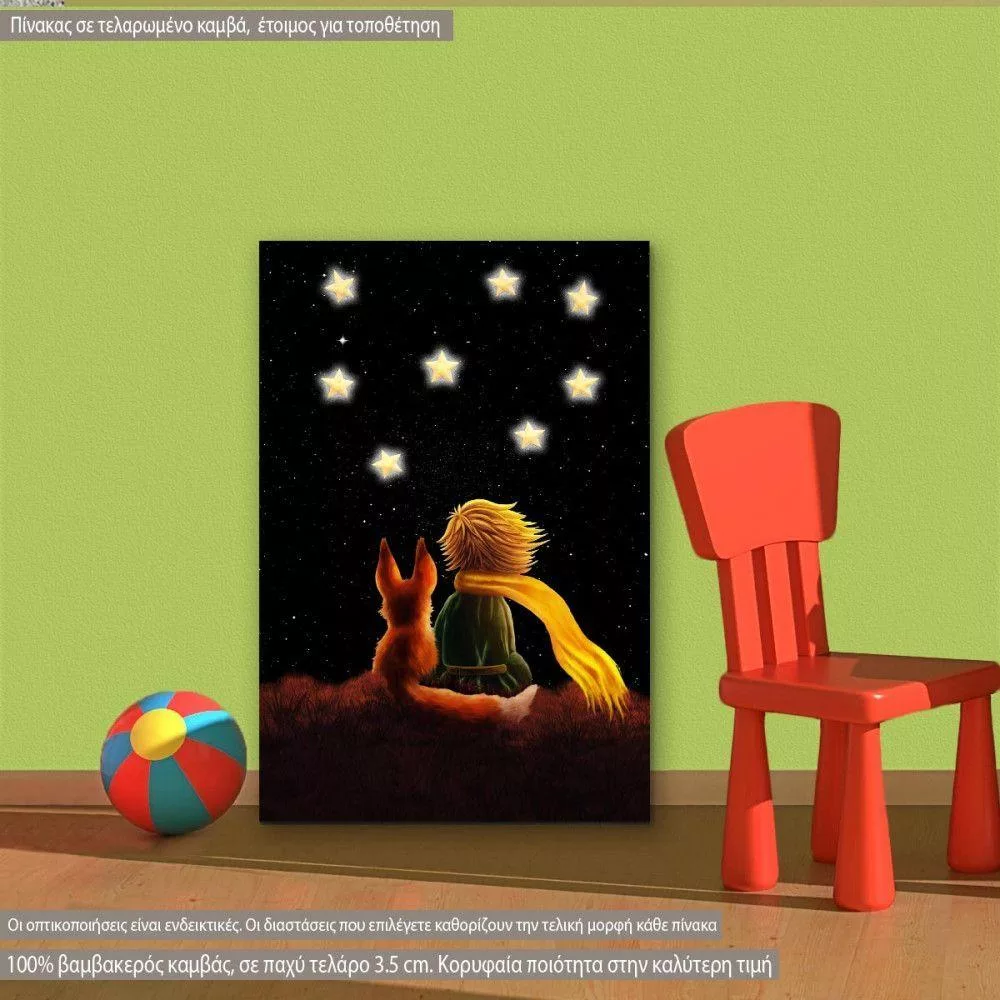 Πίνακας παιδικός σε καμβά Ο μικρός πρίγκιπας και η αλεπού, με όνομα