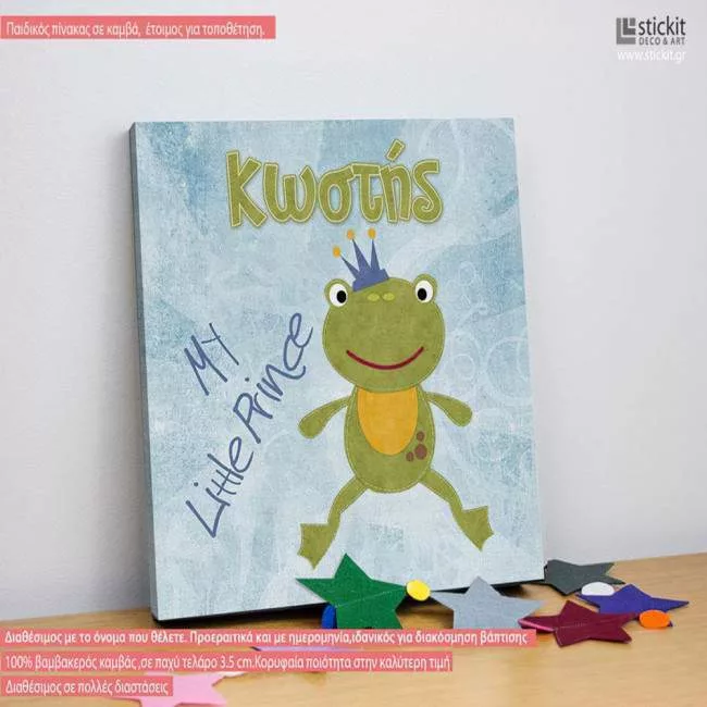 Πίνακας παιδικός σε καμβά My little prince, βατραχάκι με όνομα