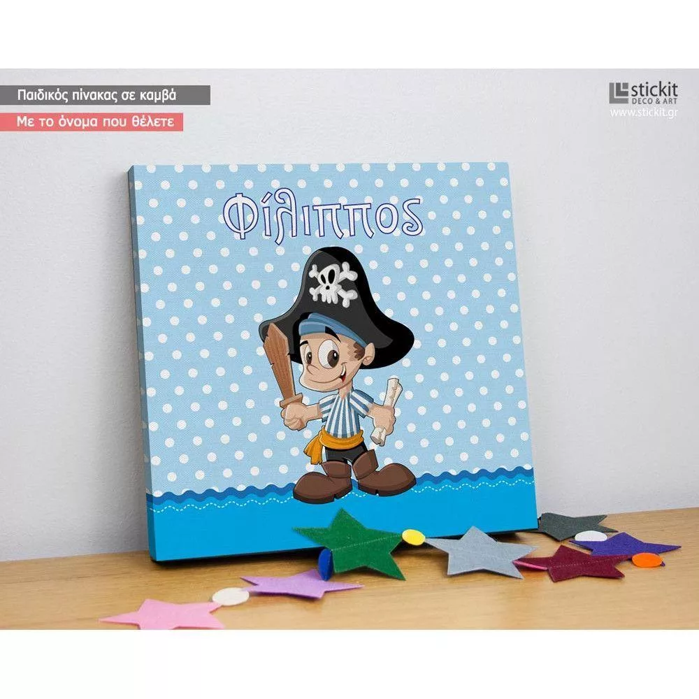 Πίνακας παιδικός σε καμβά Ο πειρατής μου, με όνομα