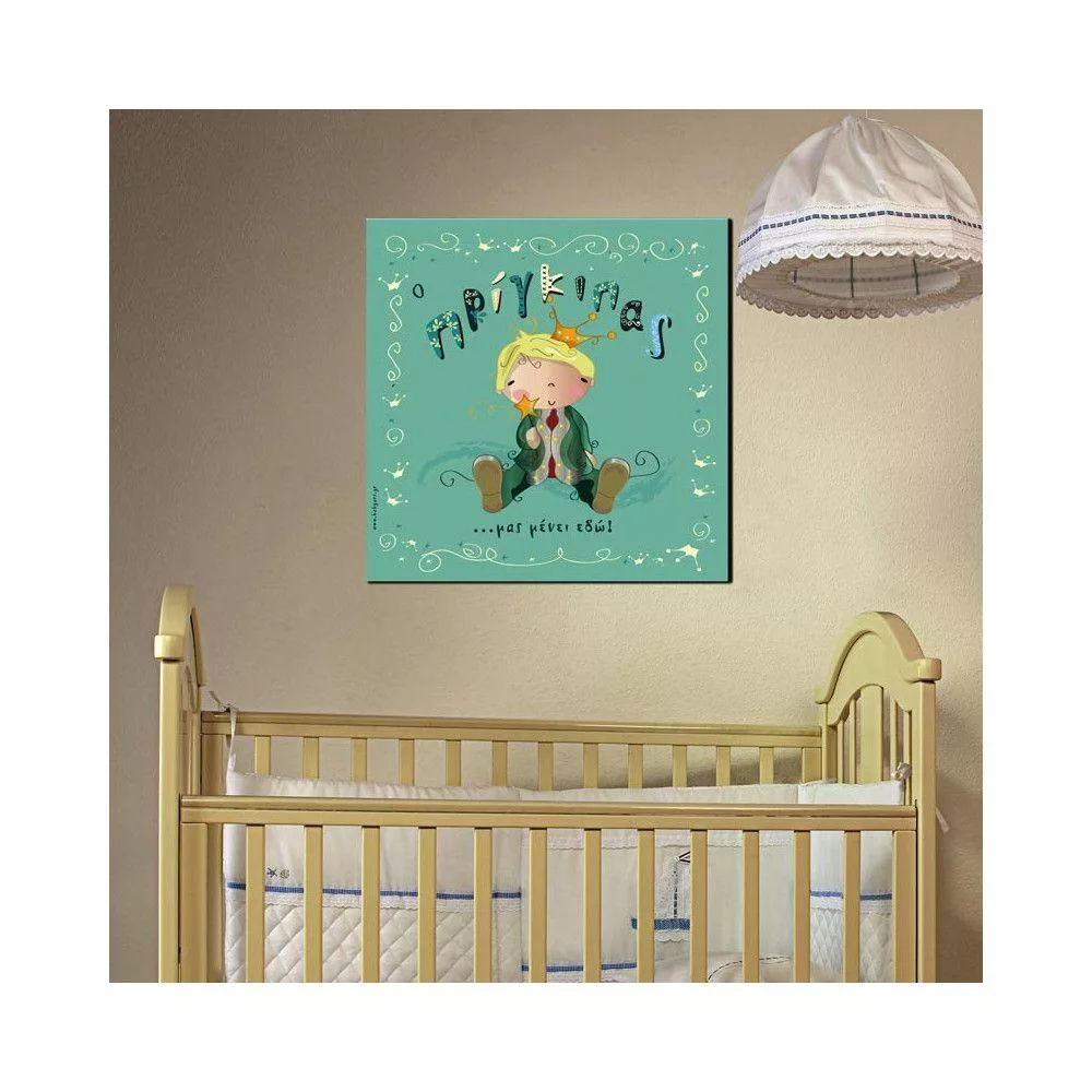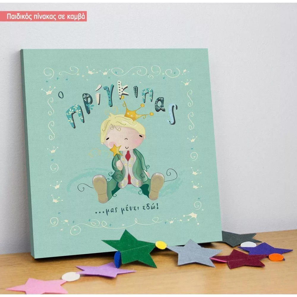 Πίνακας παιδικός σε καμβά Ο πρίγκιπας μας μένει εδώ, με όνομα