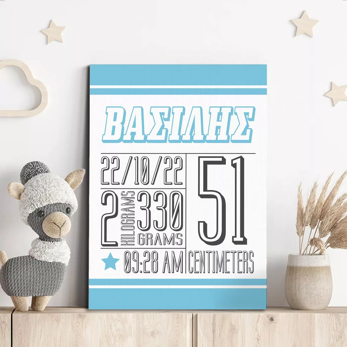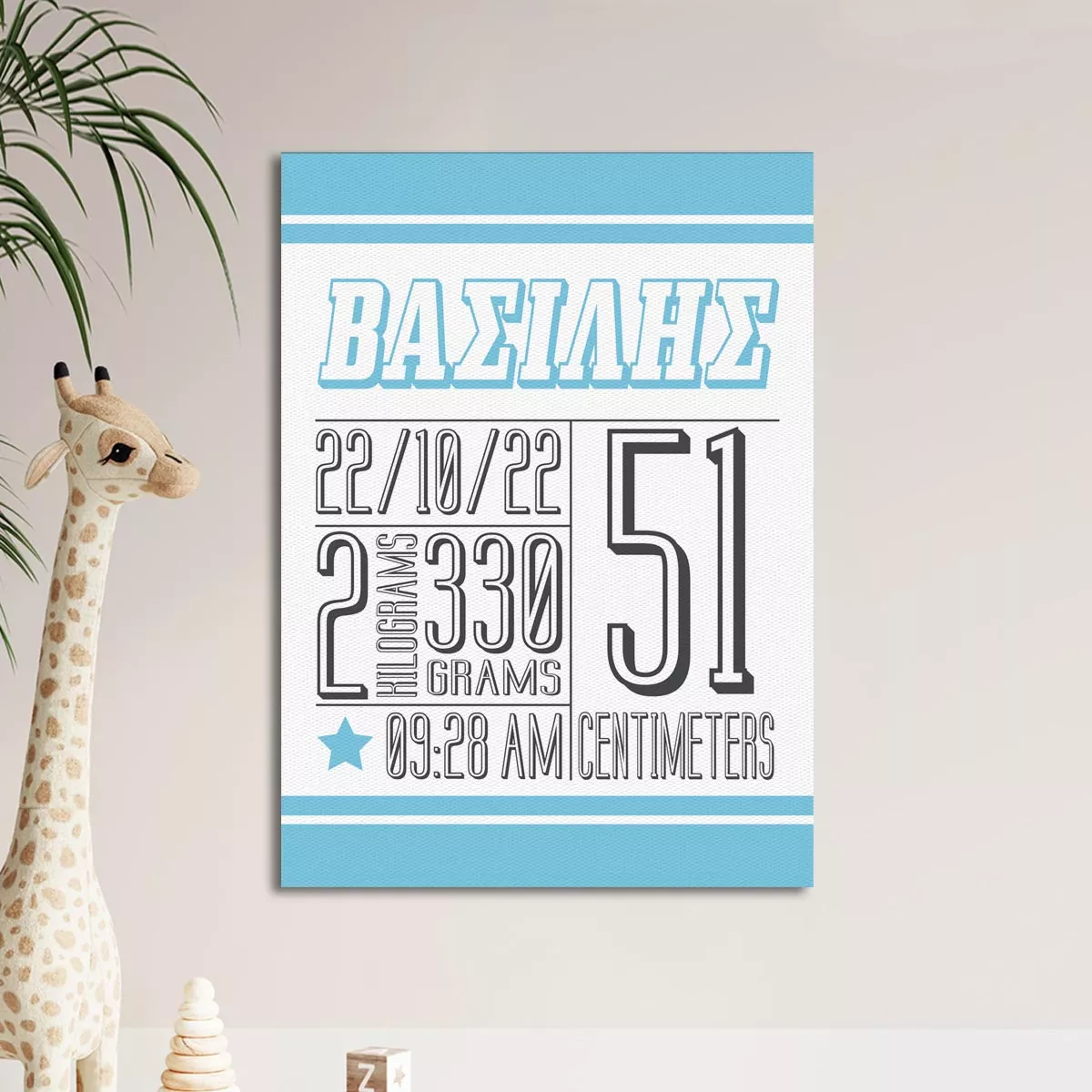 Πίνακας σε καμβά γενεθλίων με στοιχεία του μωρού