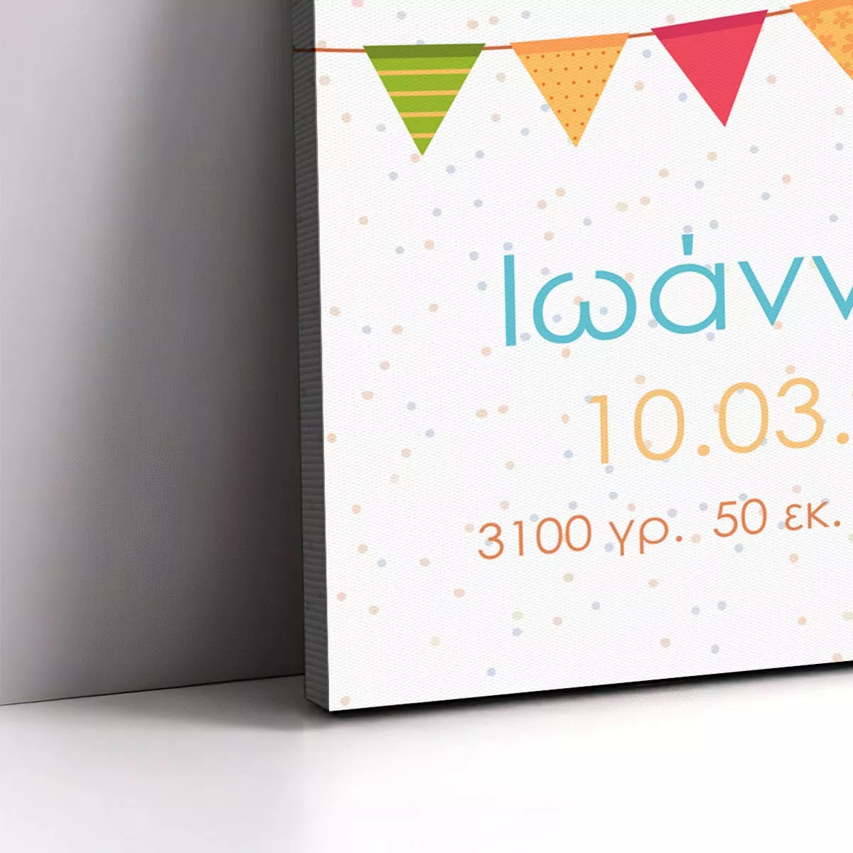 Πίνακας σε καμβά γενεθλίων με στοιχεία του μωρού