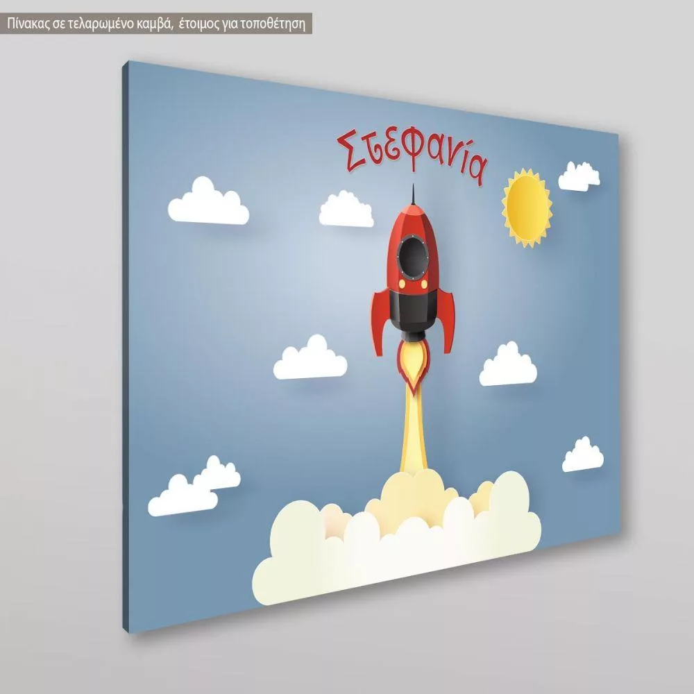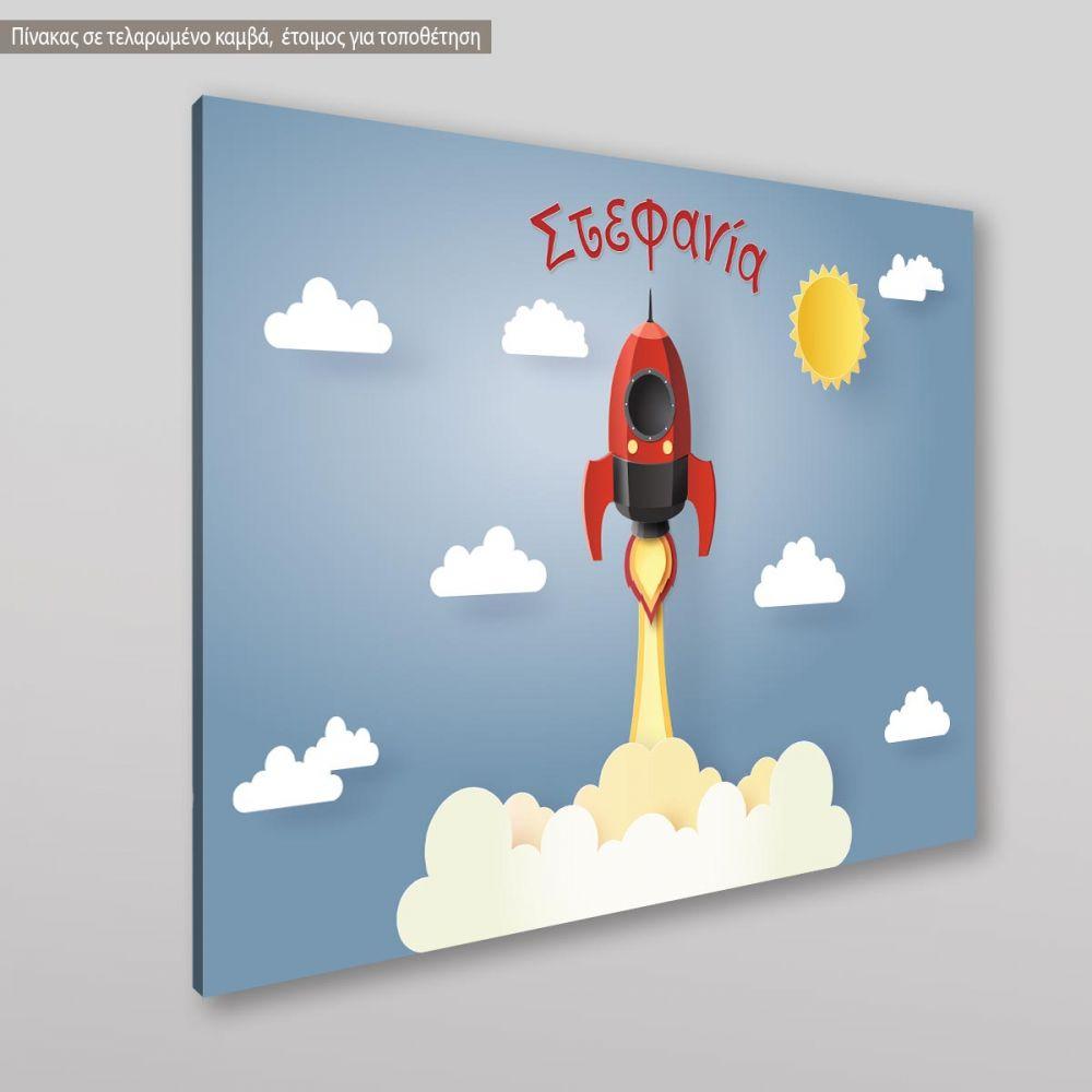 Πίνακας παιδικός σε καμβά To the stars, πύραυλος