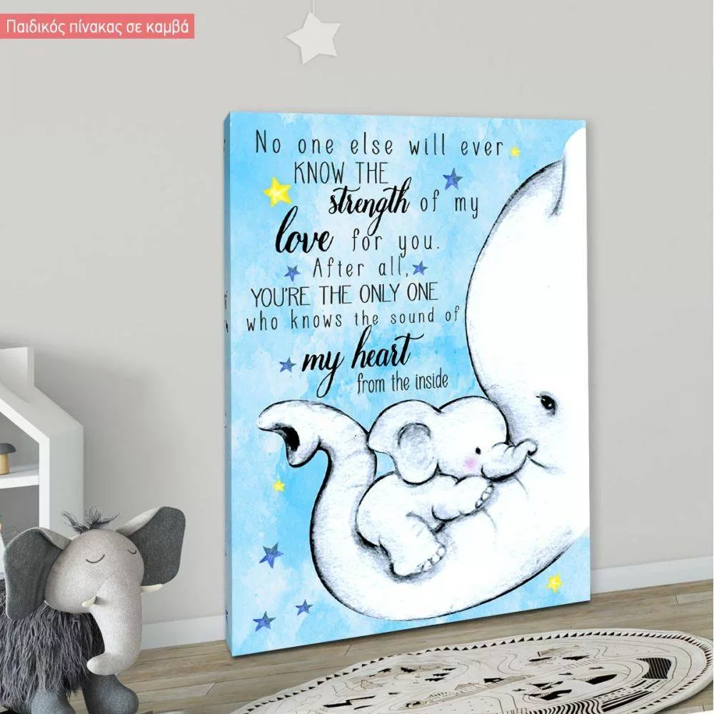 Παιδικός πίνακας σε καμβά Ελεφαντάκι No one else will ever know... γαλάζιο