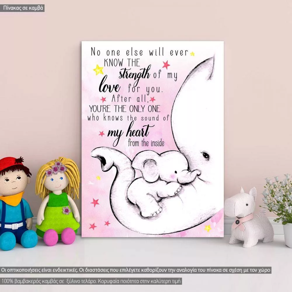 Παιδικός πίνακας σε καμβά Ελεφαντάκι No one else will ever know... ροζ