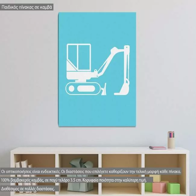 Εργοτάξιο εκσκαφέας παιδικός - βρεφικός πίνακας σε καμβά