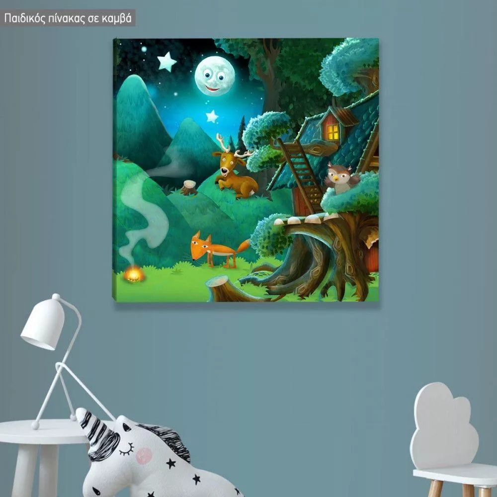 Πίνακας παιδικός σε καμβά Ένα βράδυ στο δάσος