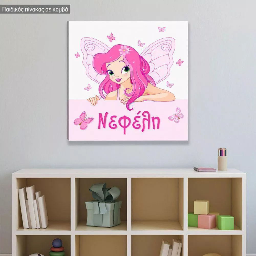 Πίνακας παιδικός σε καμβά Η νεράιδα μας 2, με όνομα