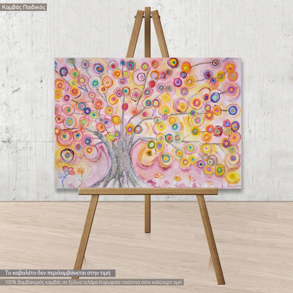 Πίνακας παιδικός σε καμβά Παραμυθένιο δέντρο, ροζ