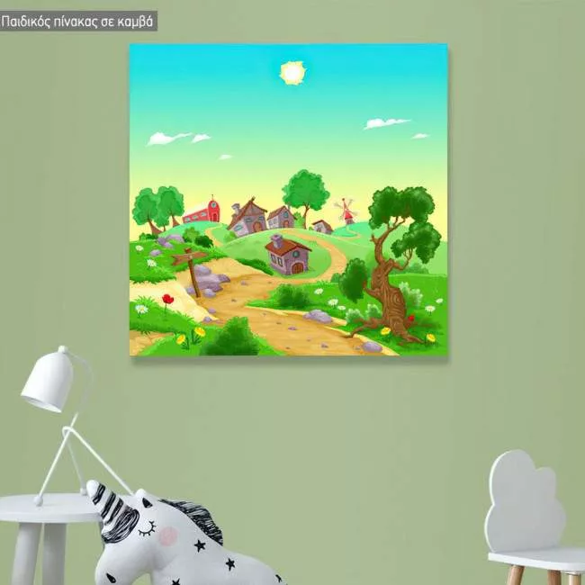 Πίνακας παιδικός σε καμβά Το χωριό