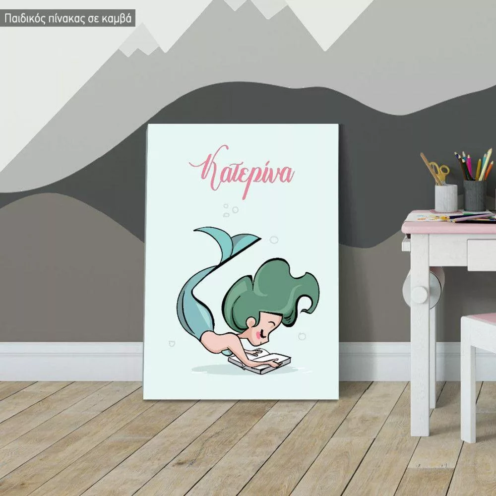 Πίνακας παιδικός σε καμβά Γοργόνα με όνομα, σχέδιο IV