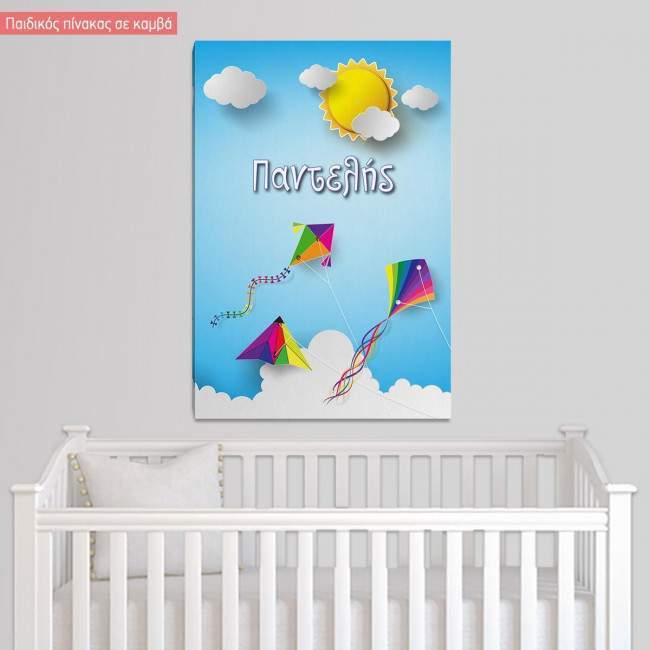 Πίνακας παιδικός σε καμβά Kites in the sky, κάθετο