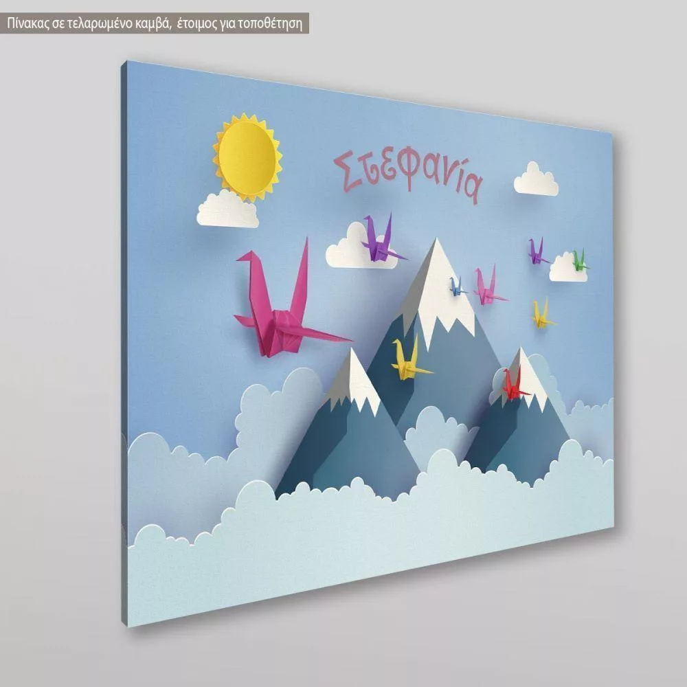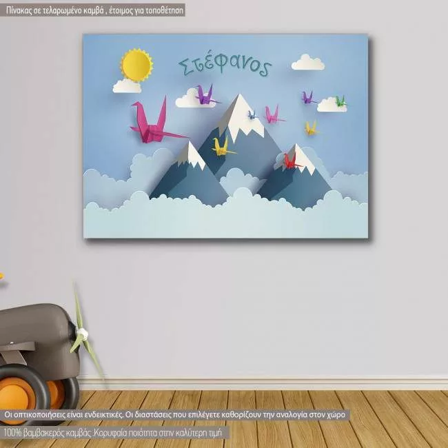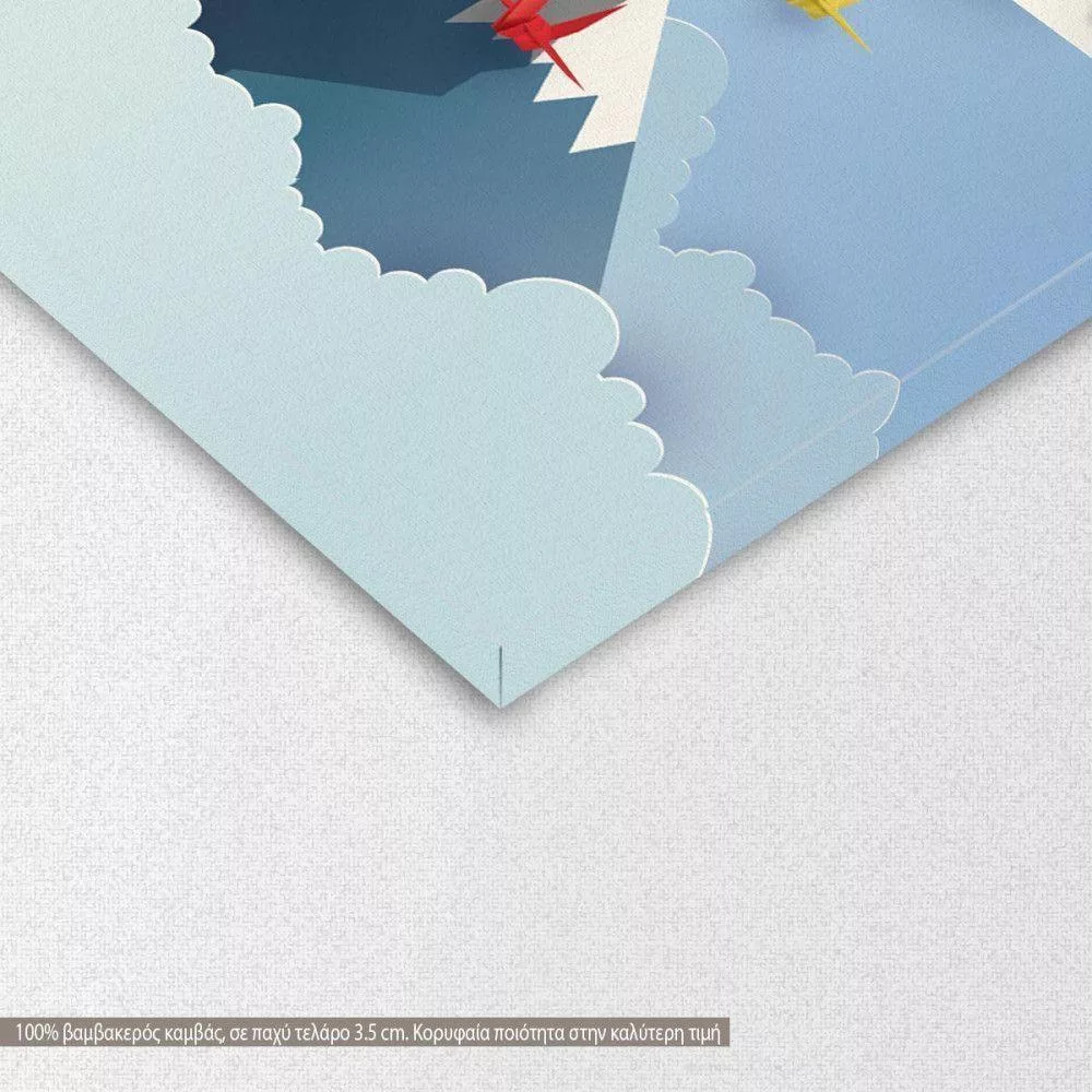 Πίνακας παιδικός σε καμβά Origami birds and moutains