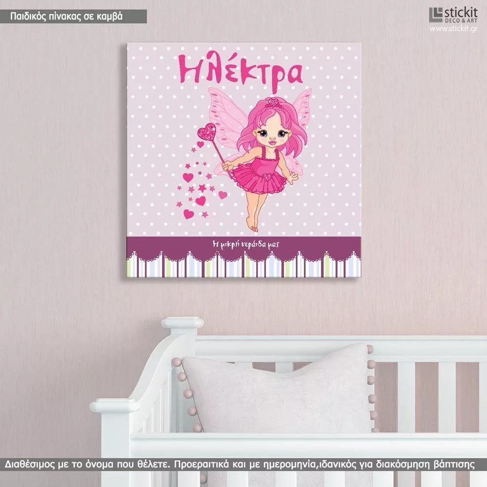 Πίνακας παιδικός σε καμβά Η νεράιδα μας, με όνομα