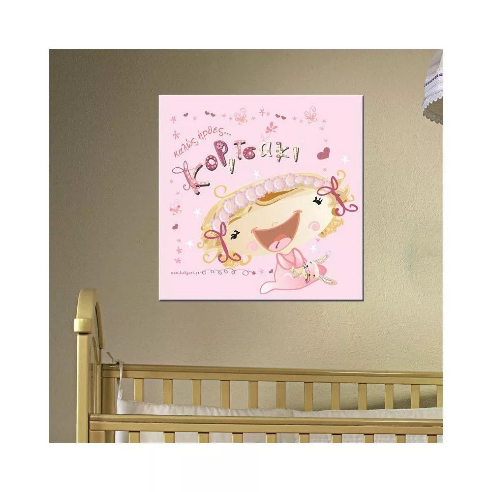 Πίνακας παιδικός σε καμβά Καλώς ήλθες κοριτσάκι!, με όνομα