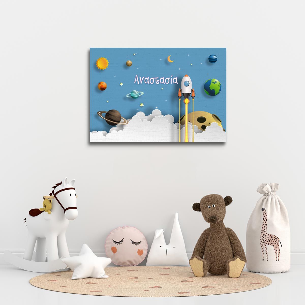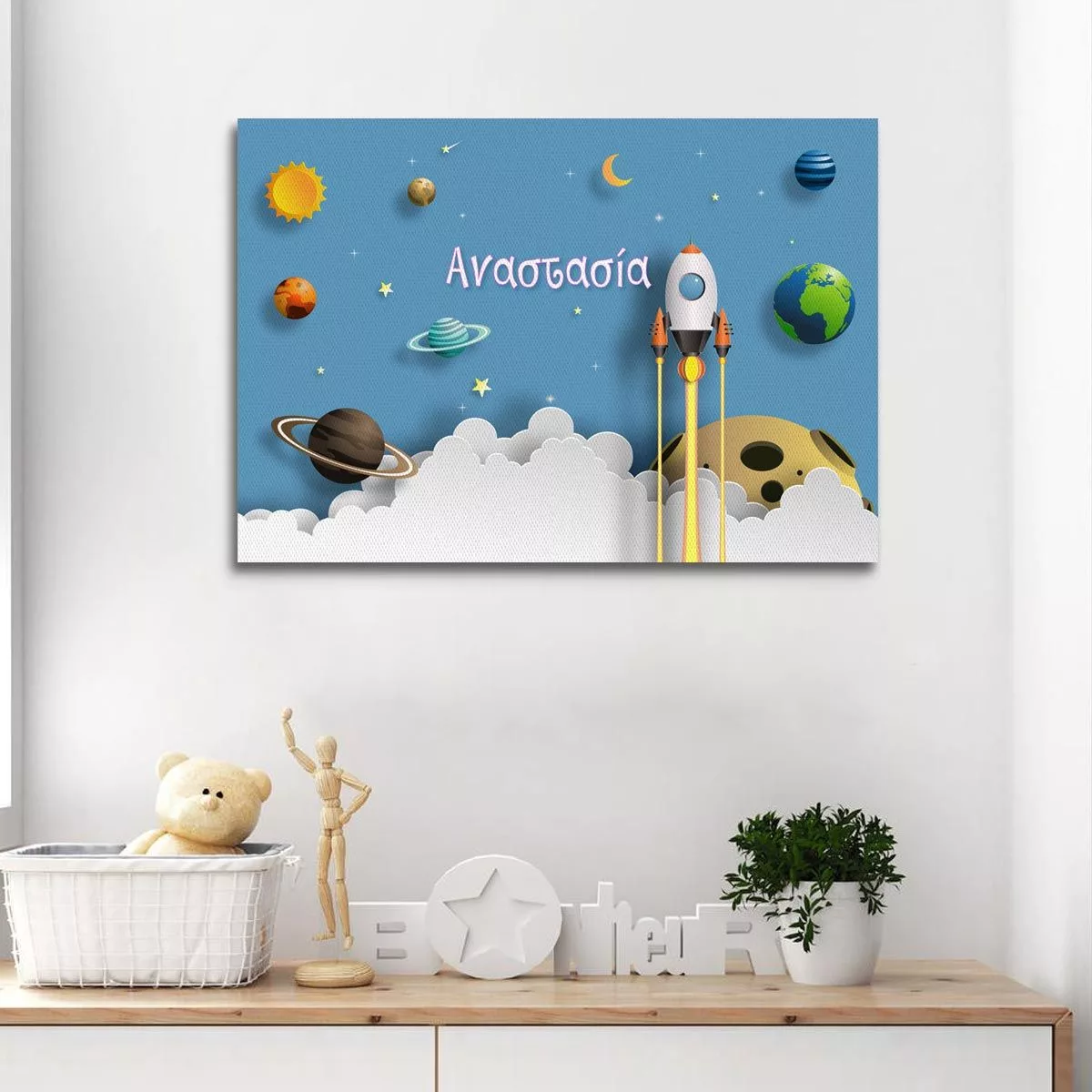 Πίνακας παιδικός σε καμβά, οριζόντιος To the stars