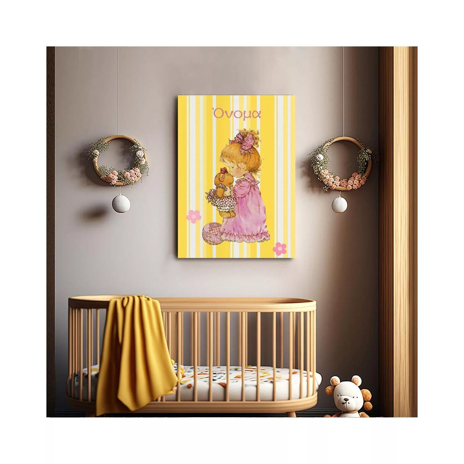 Πίνακας παιδικός σε καμβά Το αρκουδάκι μου, με όνομα, κίτρινο