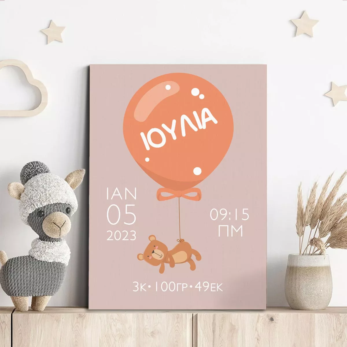 Πίνακας παιδικός σε καμβά, Balloon bear