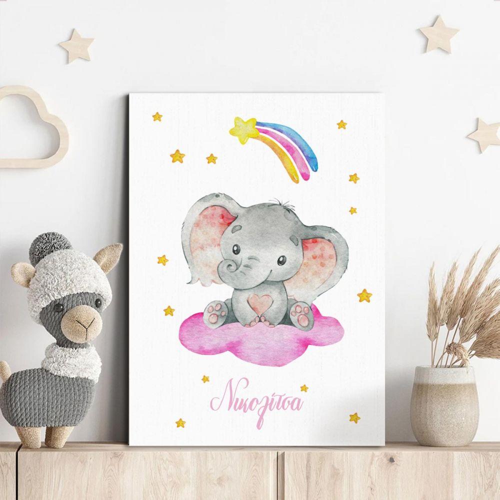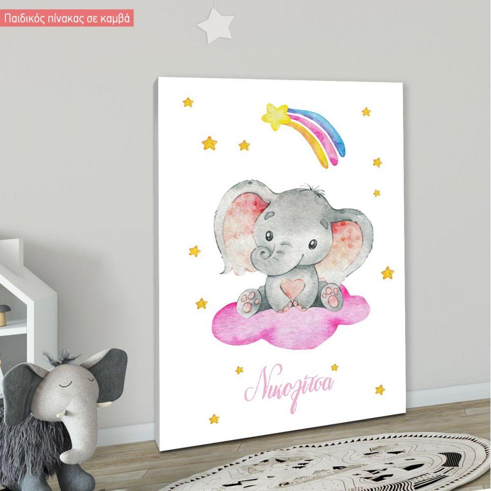 Πίνακας παιδικός σε καμβά Ελεφαντάκι ζωγραφιά watercolor