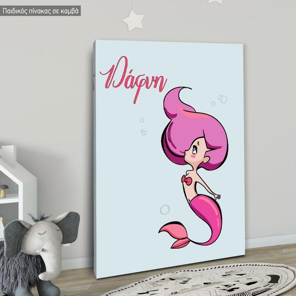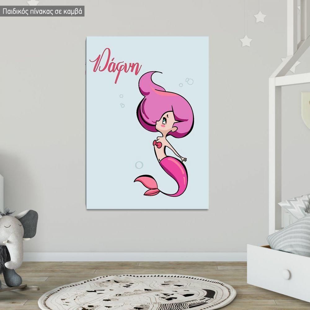 Πίνακας παιδικός σε καμβά Γοργόνα με όνομα, σχέδιο II