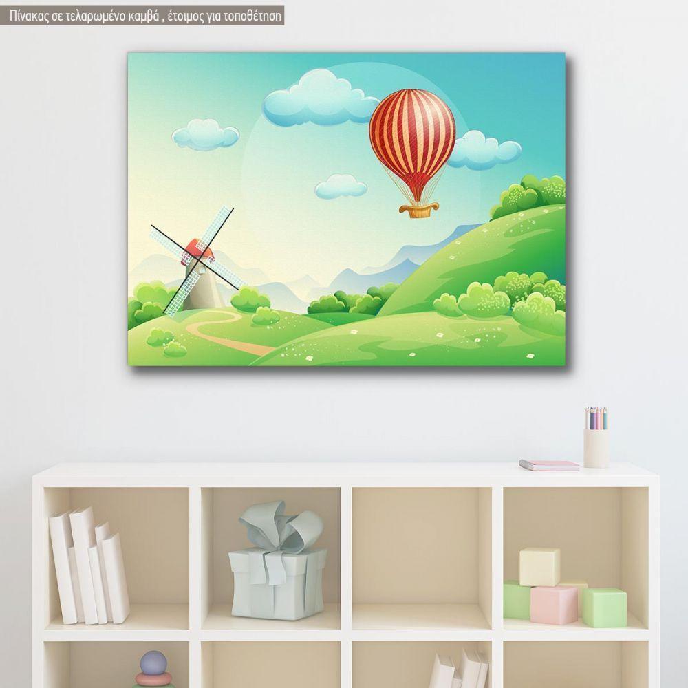 Πίνακας παιδικός σε καμβά Air balloon at countryside