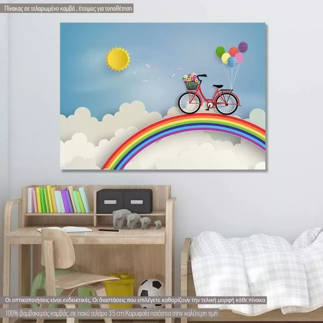 Πίνακας παιδικός σε καμβά Bicycle at rainbow
