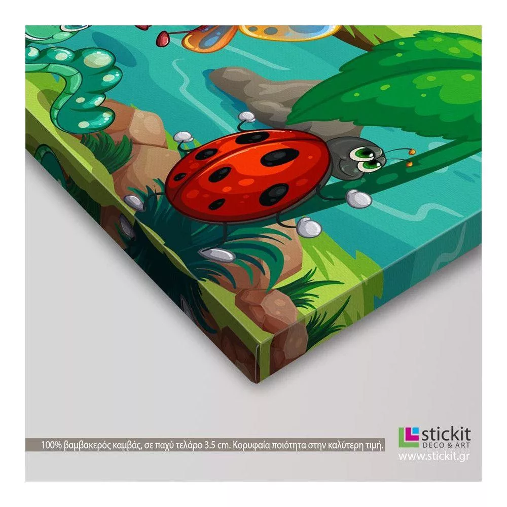 Πίνακας παιδικός σε καμβά Bug life, ζουζούνια στο ποτάμι