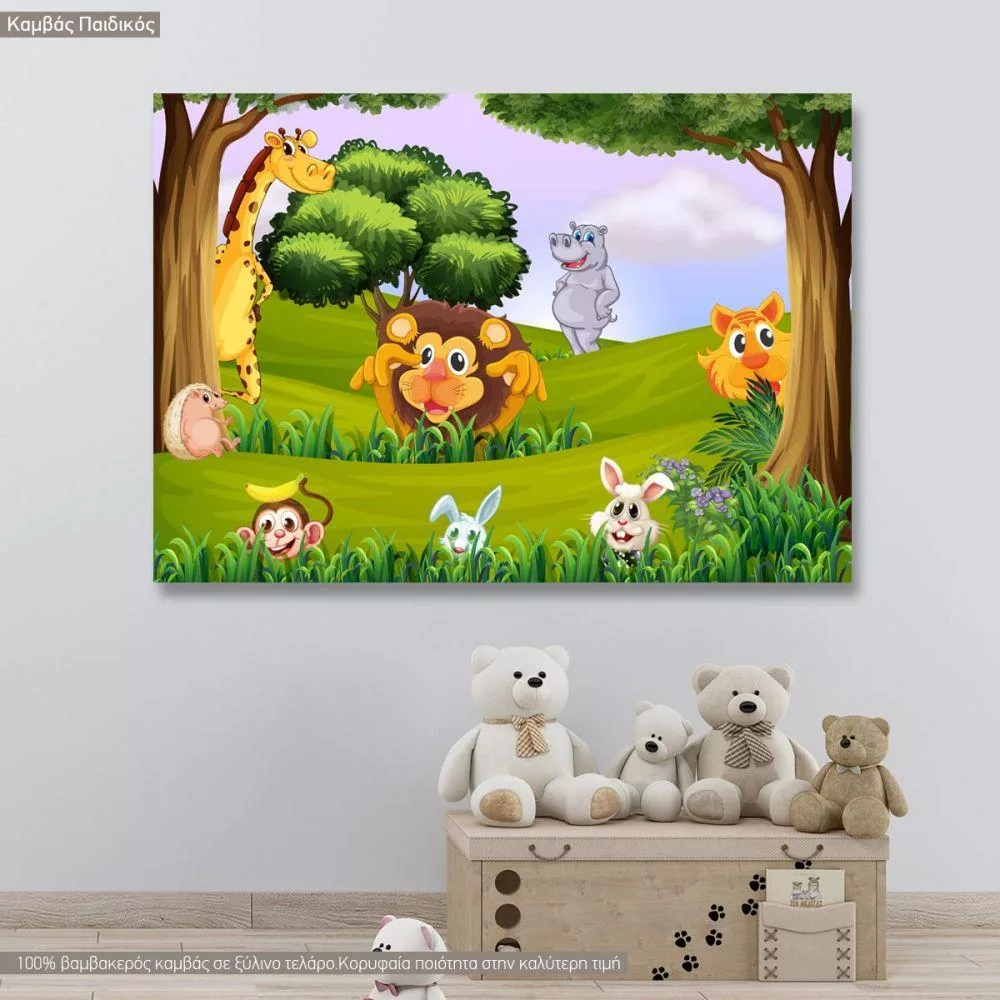 Πίνακας παιδικός σε καμβά Κρυφτούλι στο δάσος