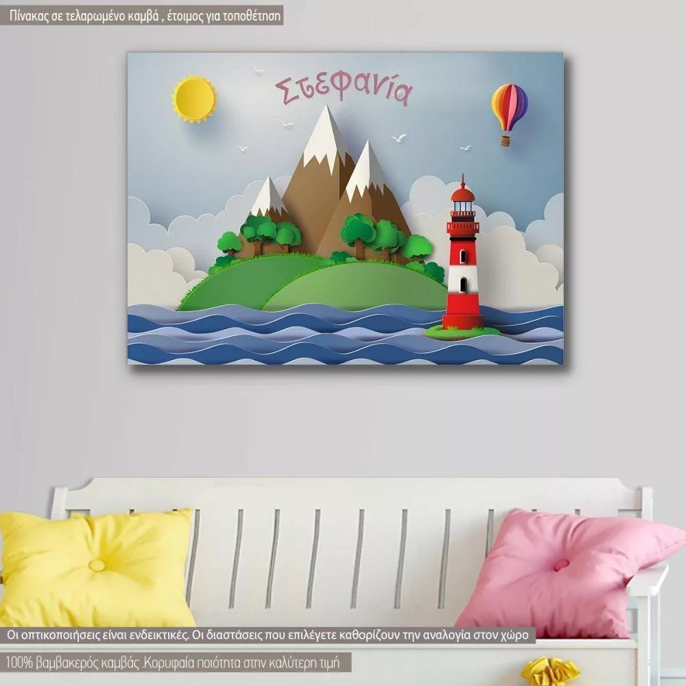 Πίνακας παιδικός σε καμβά, Φάρος στο νησί