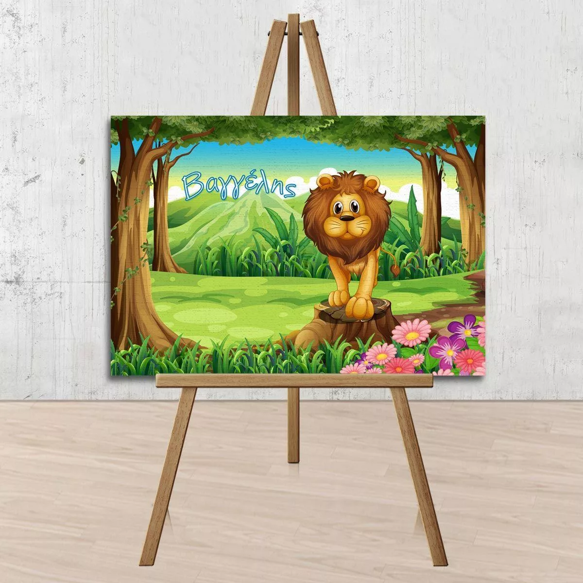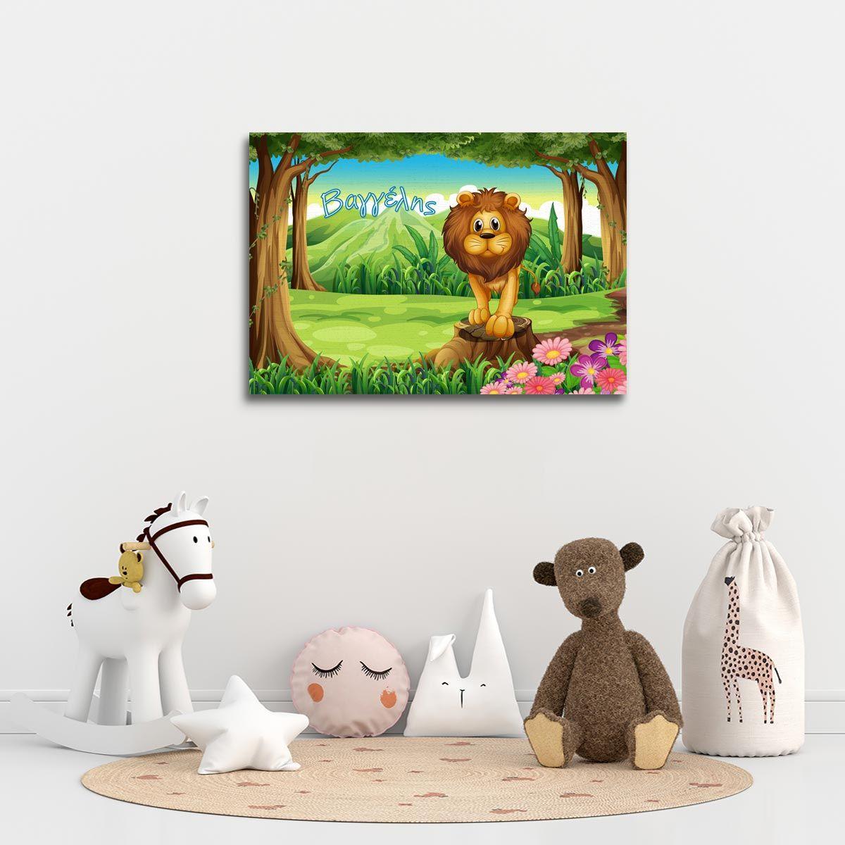 Πίνακας παιδικός σε καμβά, Λιονταράκι στο δάσος