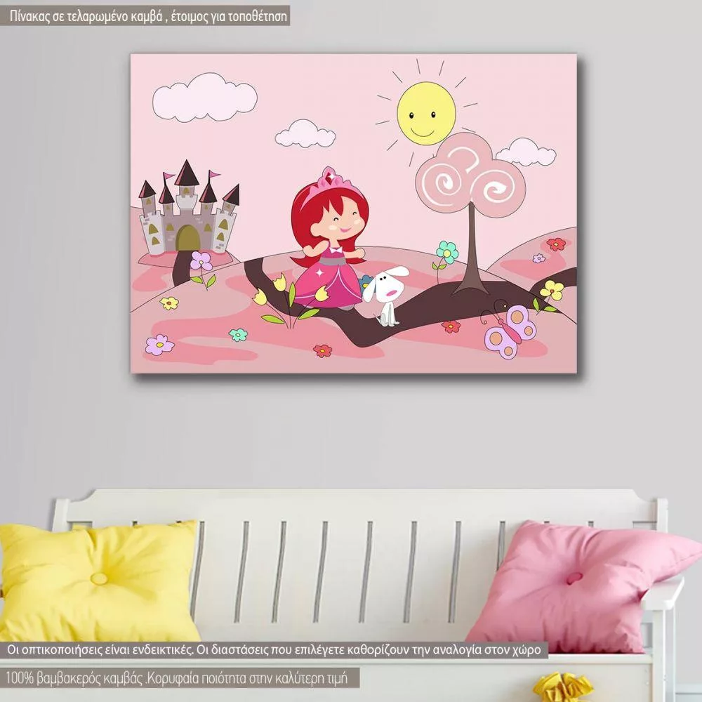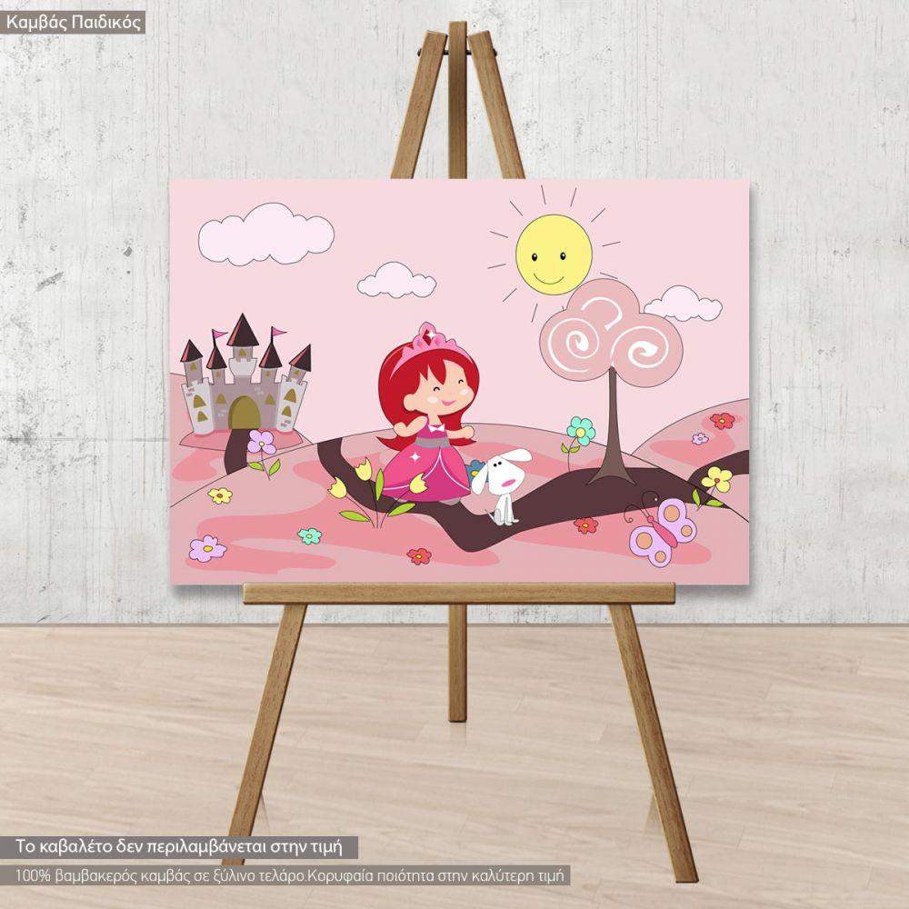 Πίνακας παιδικός σε καμβά Πριγκίπισσα με το σκυλάκι της
