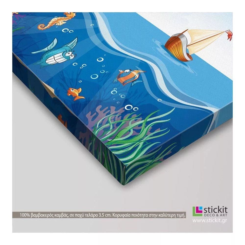 Πίνακας παιδικός σε καμβά Ship at sea and fun fish