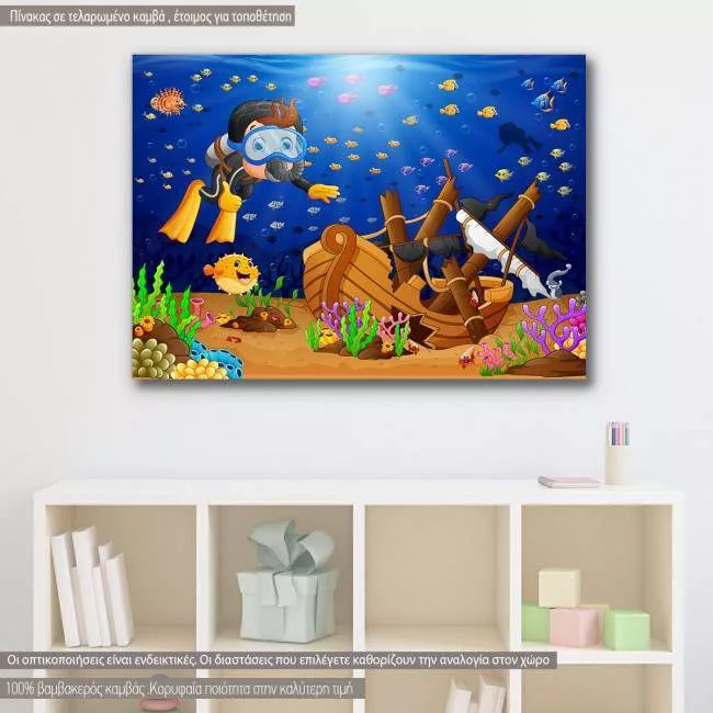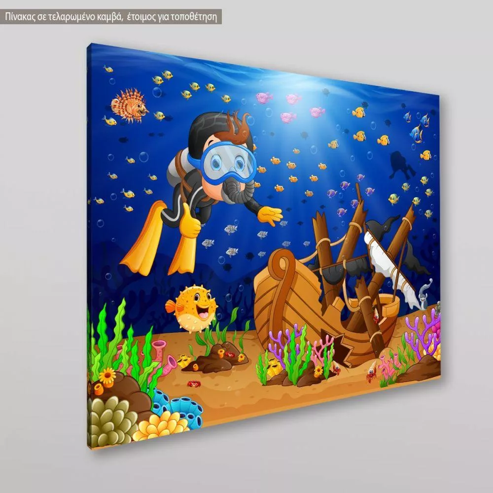 Πίνακας παιδικός σε καμβά Ταξίδι στο βυθό