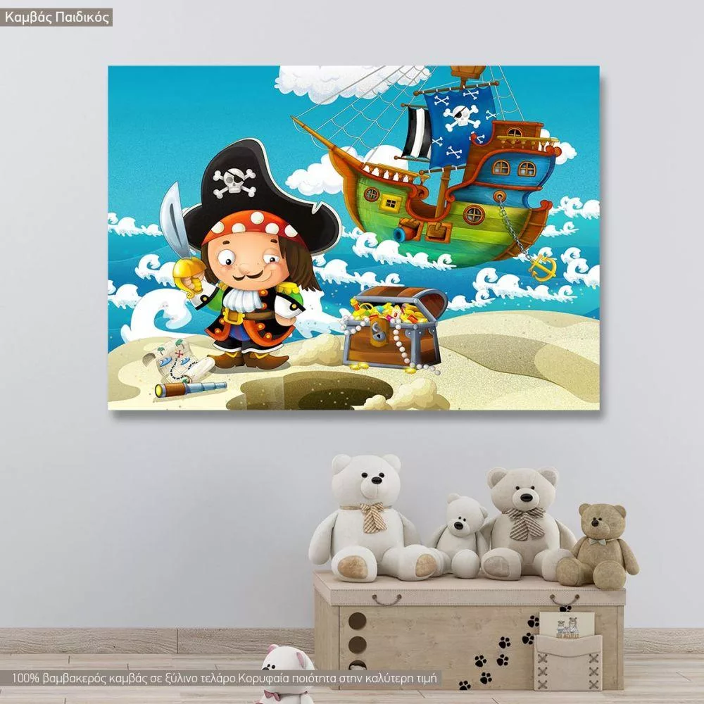Πίνακας παιδικός σε καμβά The pirates, treasure hunt