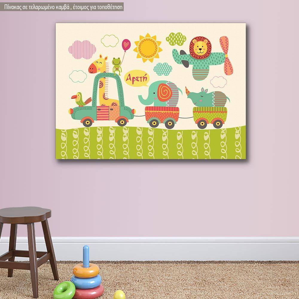 Πίνακας παιδικός σε καμβά Τρένο με μωρά ζωάκια
