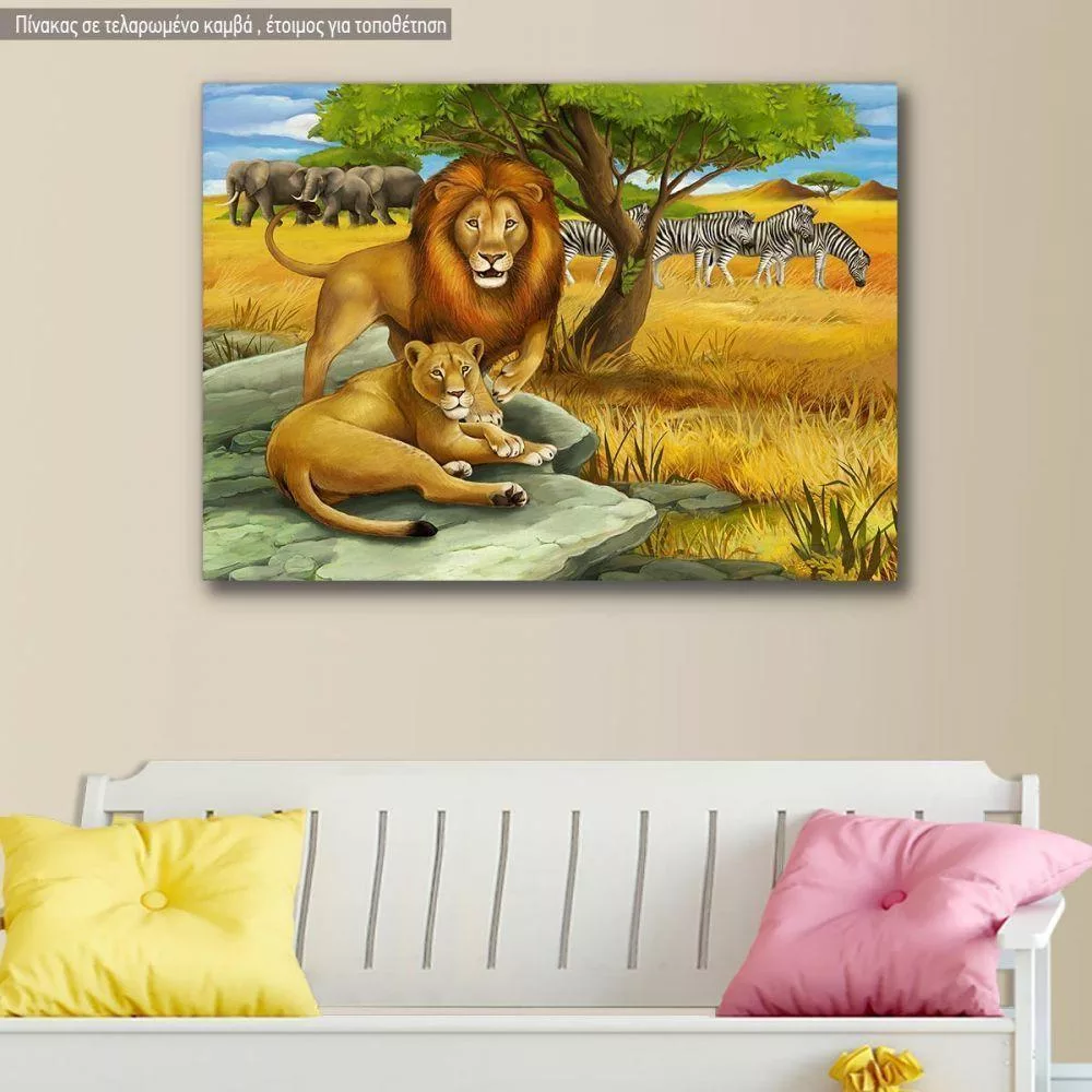 Πίνακας παιδικός σε καμβά ο βασιλιάς και η βασίλισσα της σαβάνας
