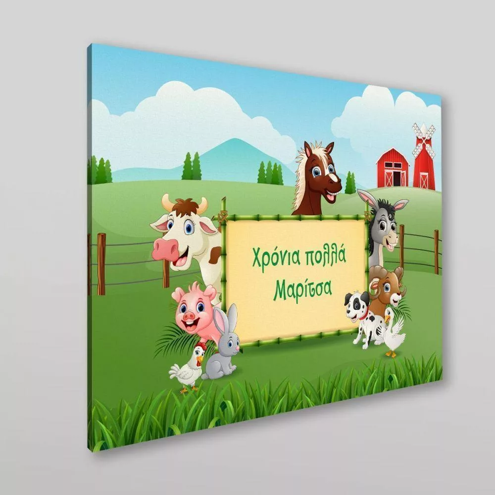 Πίνακας παιδικός σε καμβά Ζωάκια της φάρμας με κείμενο