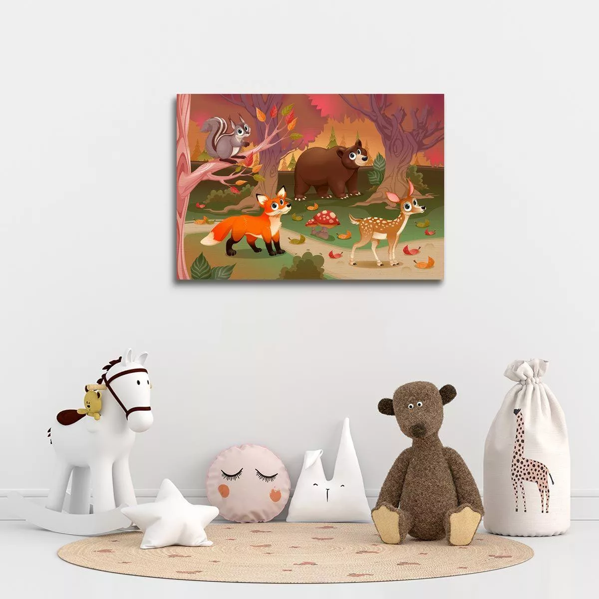 Πίνακας παιδικός σε καμβά Ζωάκια, φιλαράκια στο δάσος