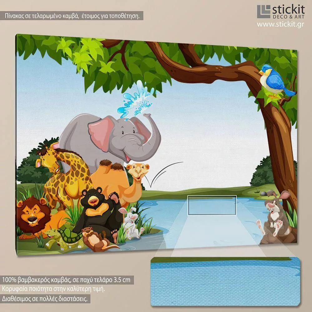 Πίνακας παιδικός σε καμβά Ζωάκια της σαβάνας στο ποτάμι