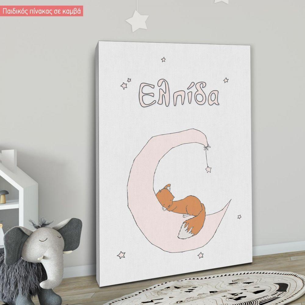 Πίνακας παιδικός σε καμβά Reach for the stars, ελεφαντάκι στα αστέρια με όνομα