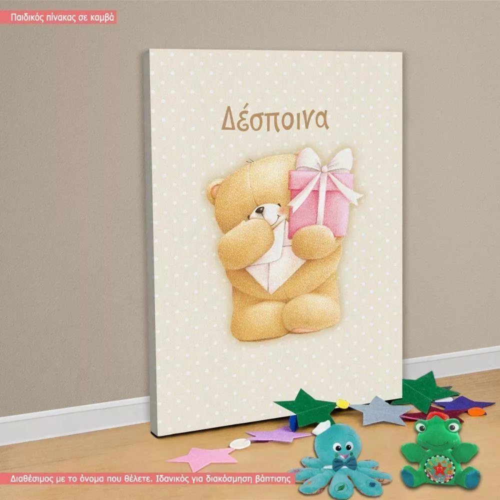 Πίνακας παιδικός σε καμβά Αρκουδάκι friends girly, με όνομα