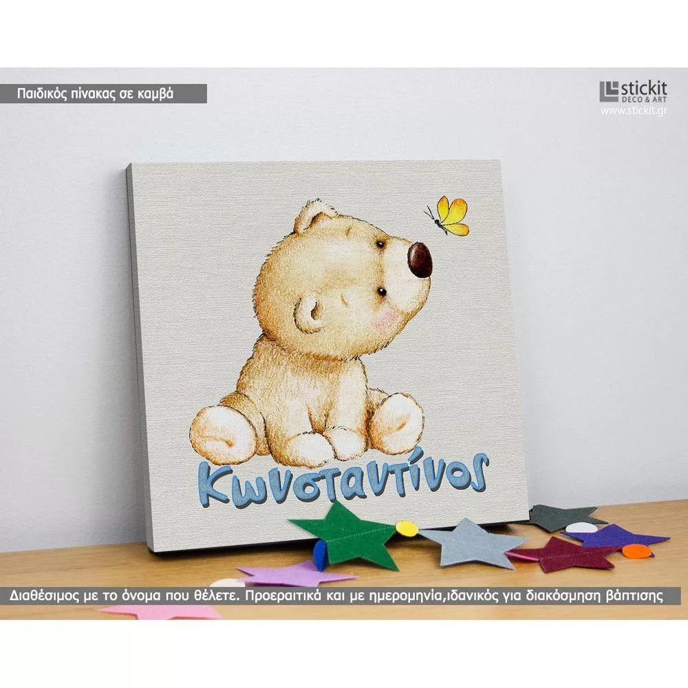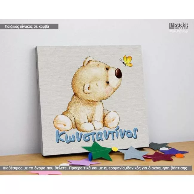 Πίνακας παιδικός σε καμβά Ντροπαλό αρκουδάκι με όνομα