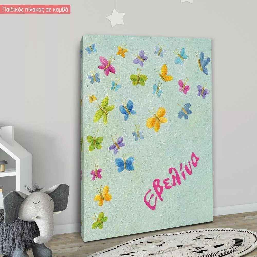 Πίνακας παιδικός σε καμβά Γεμίσαμε πεταλούδες!