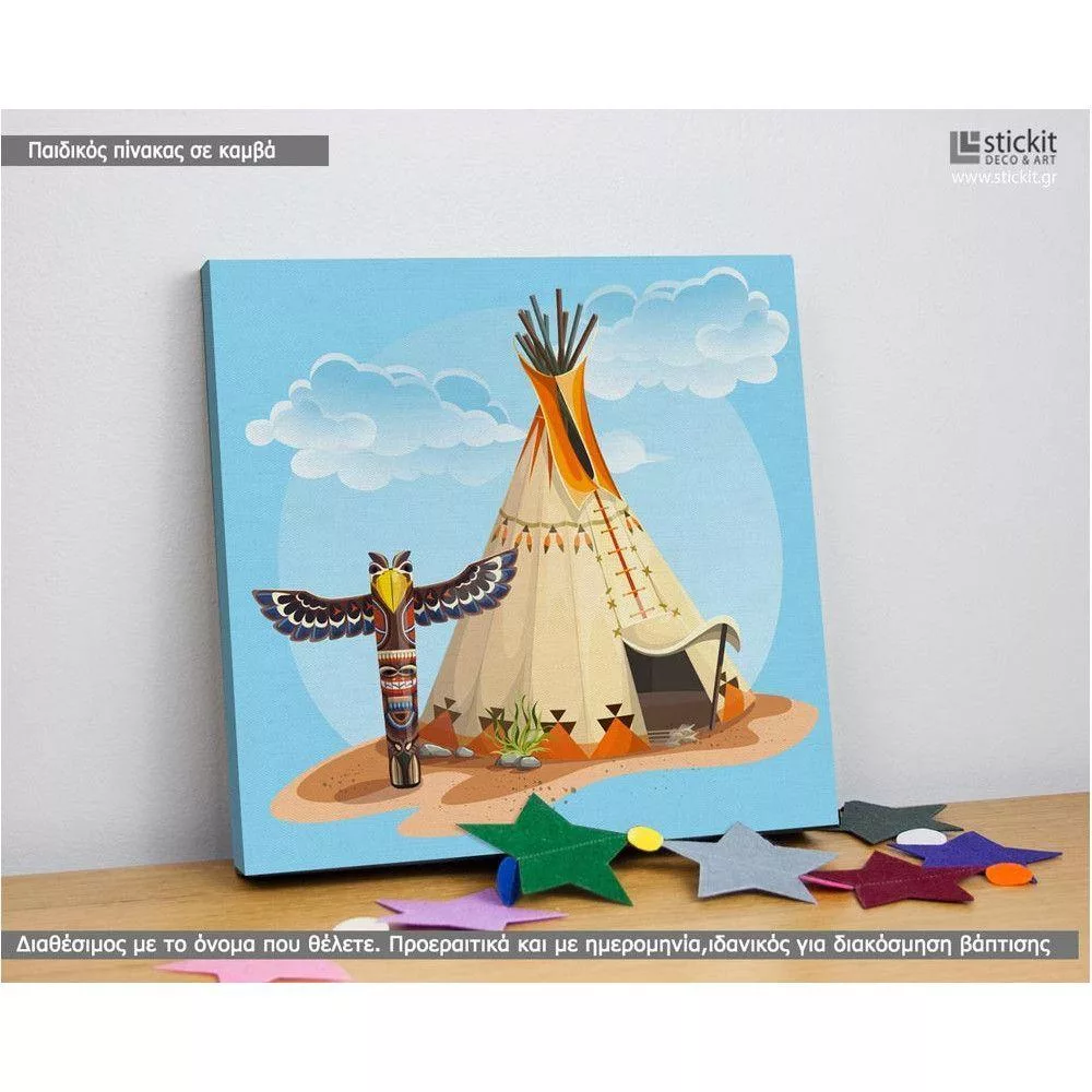 Πίνακας παιδικός σε καμβά Indian tent and totem