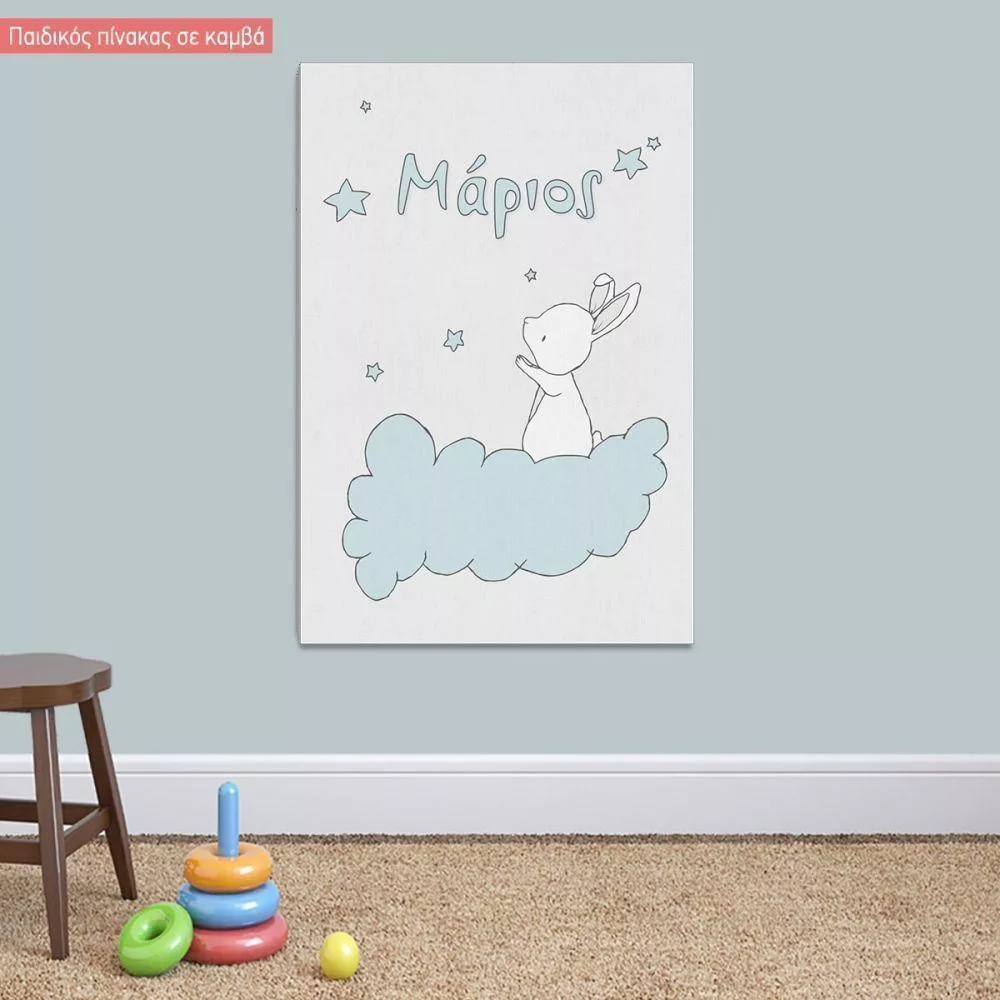 Πίνακας παιδικός σε καμβά Λαγουδάκι στα σύννεφα
