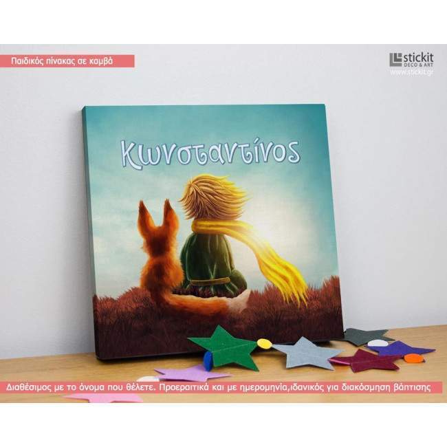 Πίνακας παιδικός σε καμβά Ο μικρός πρίγκιπας και η αλεπού, με όνομα