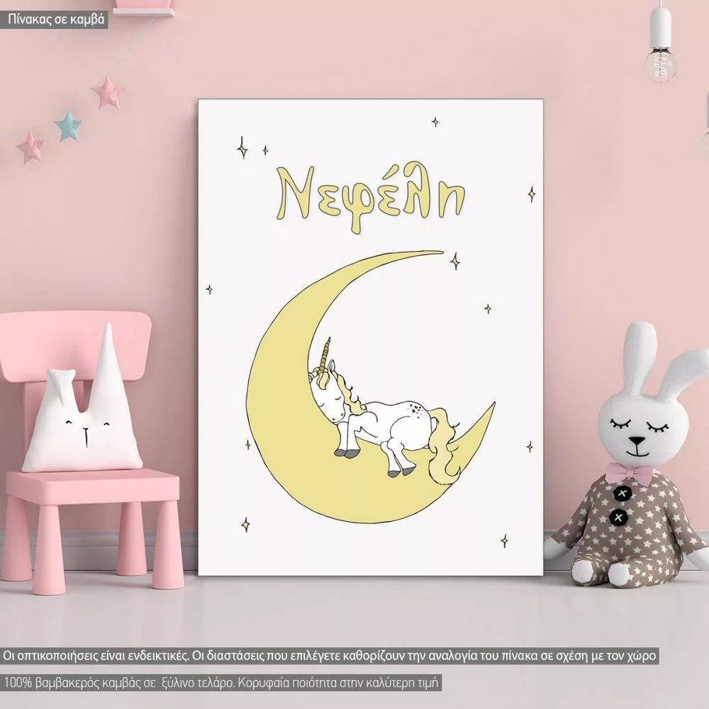 Πίνακας παιδικός σε καμβά Μονόκερος στο φεγγάρι