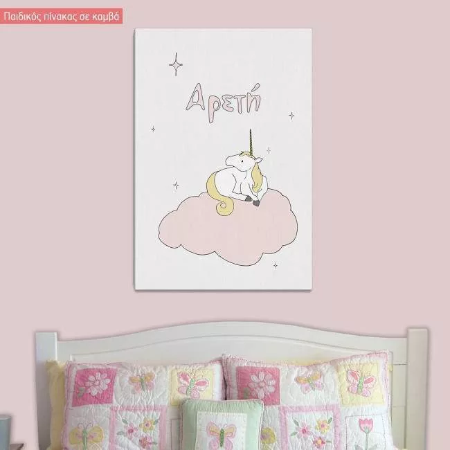 Πίνακας παιδικός σε καμβά Μονόκερος στα σύννεφα