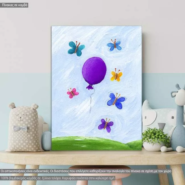 Πίνακας παιδικός σε καμβά Μπαλόνι και πεταλούδες
